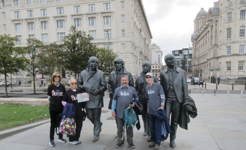 The Cape Gazette made it all the way to Liverpool, England, Sept. 19, 2025, with travelers Bert and Sue Ann Hennessy and Mark and Brigitte Valesey of Lewes during their Cunard Queen Mary 2 cruise around Great Britain. The devoted readers are shown here at the iconic Beatles statues on the Liverpool pier, where the group proudly shared a piece of home abroad. It was a memorable stop on their journey.