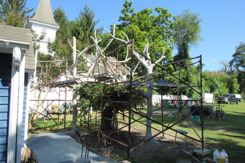 The 14-foot-tall structure took about 120 hours to create and weighs at least a ton, Allen estimated. It has been named “Dance of the Trees.”