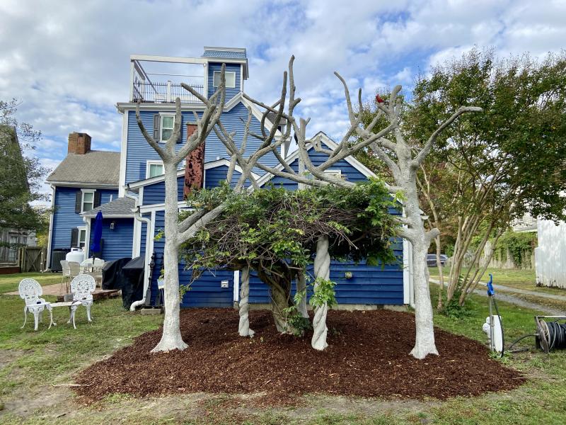 So, when neighbor Ken Brittingham needed help saving his 150-year-old wisteria, he called on Allen. The backyard wisteria was spreading out, not up, and needed supports to refocus its growth.