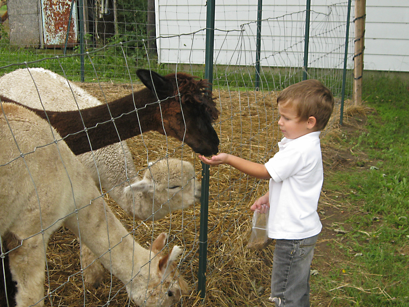 Mason Couchman, 4, of Georgetown, feeds the alpacas during farm day activities.