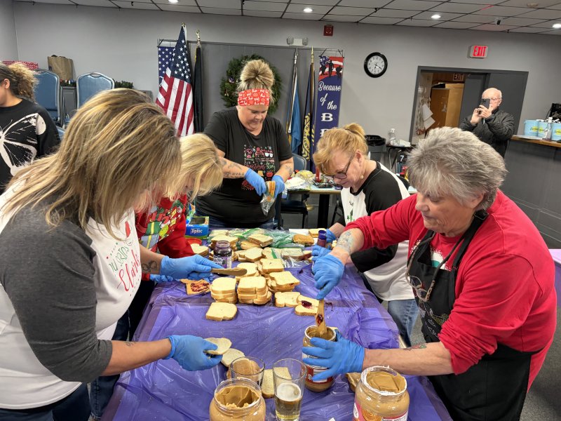 Members of AmVets Post 2 in Long Neck, in partnership with nonprofit Hope On Deck, raced the clock to make peanut butter and jelly sandwiches Dec. 4 that will be provided to Delaware’s homeless population.