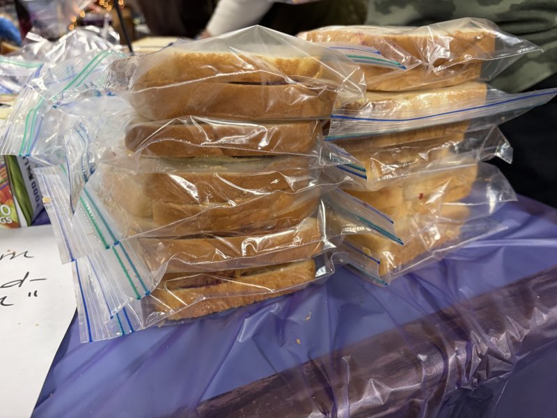 The sandwiches are part of bagged meals the volunteers from Hope on Deck provide to people in Delaware struggling with homelessness.