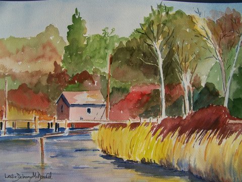 McDonald's paintings reflect her love of coastal Lewes and recall the rural areas of her native Maine, where she paints each summer.