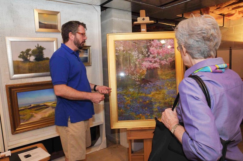 Watercolor painter Leslie Delmege McDonald, right, talks with Betty Hill about the unique locations she paints from around the world. BY STEVEN BILLUPS