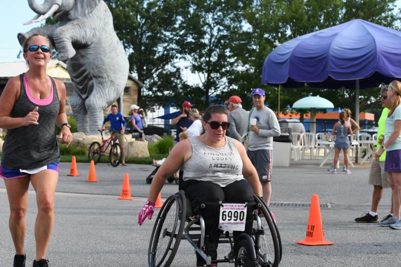 Kim Geyer, a Millersville cop who wrenched her neck wrestling a perp, was female masters champion in 23:35.
