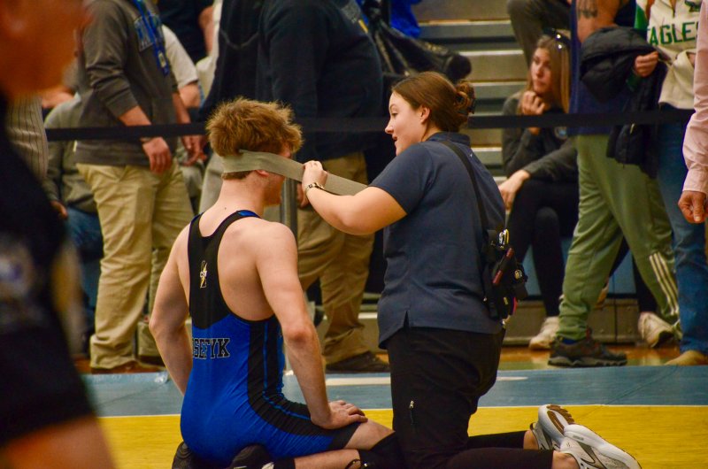 “We've got two on the mats covering for injury time [and] blood time, and then one station kind of in the training room for triage evaluation,” Heidel said.