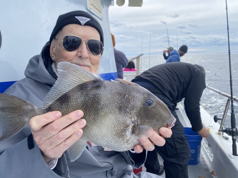The bite was not drop and crank, but it was steady. Ric was catching more keepers than me, and the guy to my left might as well had been my son Roger. Every time he dropped down, he caught a keeper sea bass. I did catch a triggerfish and a bluefish.