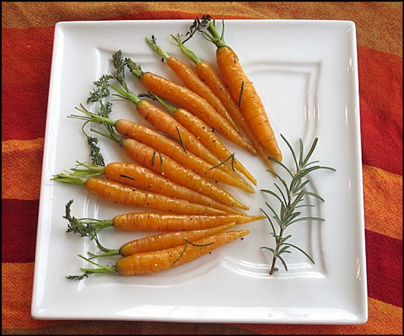 Don’t discard the greens, but keep them for other dishes. Add finely chopped carrot greens to a tossed salad or tabbouli. Include them in a stir-fry or rice pilaf recipe, much as you would use parsley. They also add a lovely touch to a serving platter as a delicate garnish. Also, keep in mind when you see recipes online that call for “baby carrots,” the author usually refers to the rounded stubs of processed carrots sold in plastic bags – avoid these imposters at all costs.