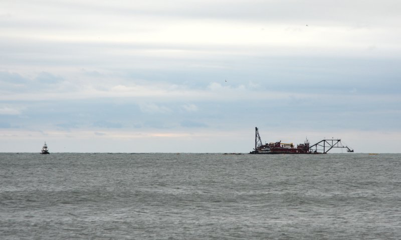 There’s also the dredge out in the Atlantic. The one out there for the current project is a cutter dredge named Illinois. It’s 309 feet long, 67 feet wide, has a maximum digging depth of 75 feet, has an 11,300-horsepower engine and can operate in seas reaching nearly 10 feet.
