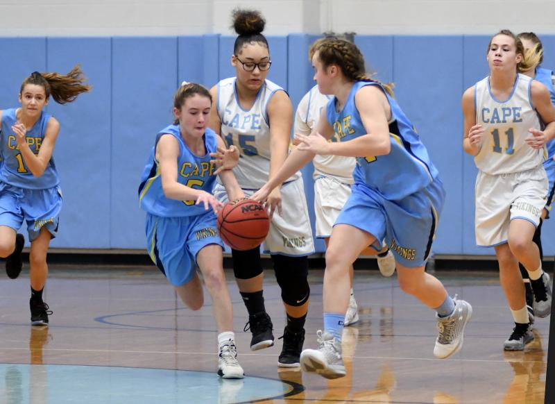 Beacon and Mariner faced off for their annual battle of the Cape district at Cape Henlopen High School Feb. 6. The Beacon girls squeaked out a 24-20 victory.