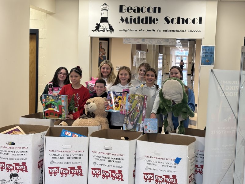 Beacon Middle School students spread holiday cheer in December through a successful Toys for Tots campaign under the guidance of seventh-grade math teacher Charles Mumford.