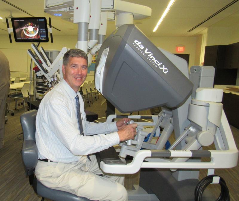 Invited guests met incoming surgeon Dr. Kurt Wehberg, chief of the new center, and tried their hands operating a demonstration surgical robot.