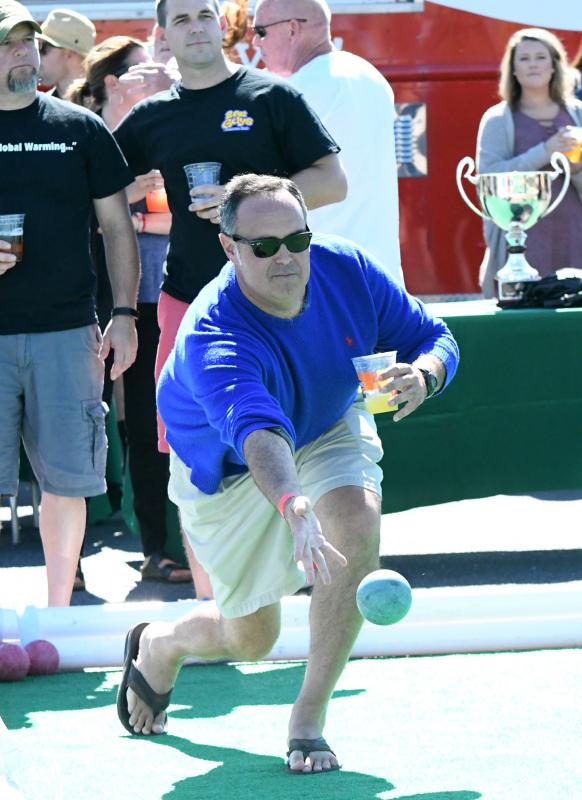 This year, 36 restaurant teams, paired with local legislators, competed on the bocce courts of the Dogfish Head Brewery in Milton. Team Restaurant 55 took home top honors for their costumes.