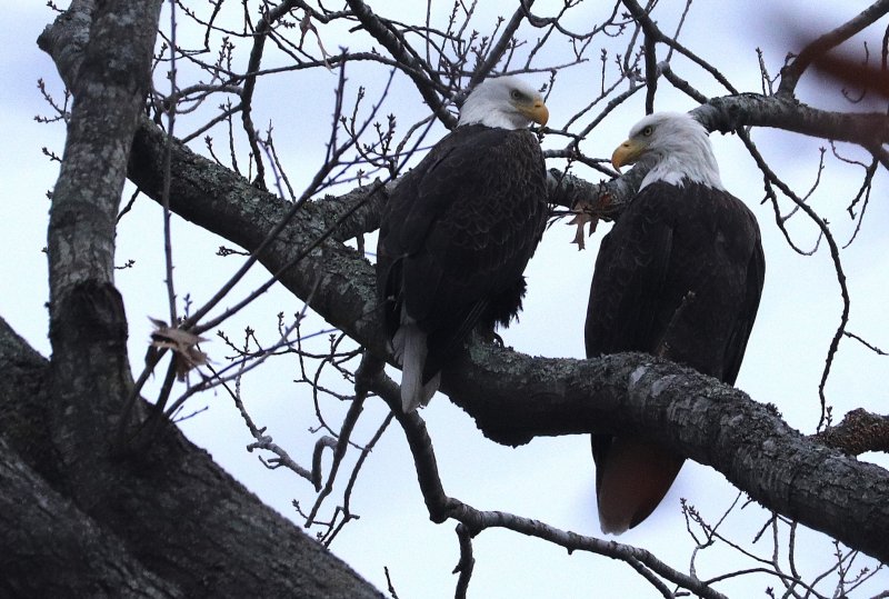 A pair of eagles keeps watch on Red Mill Pond in Ann Dinkel’s photo.