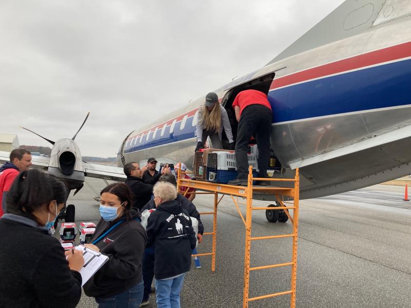 The dogs were brought in from shelters in Louisiana; cats were also part of the flight, but they were flown to New Castle Airport, where they were taken to Brandywine Valley’s facility in New Castle.