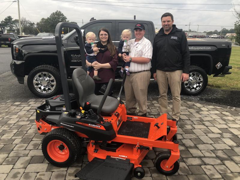 Burke Equipment Company of Felton, Delmar and Newark congratulates the Adam Cartwright family of Seaford as the winner of a Kubota Z222 Zero-Turn mower. The mower was the grand prize in the Harrington Realty/Burke Equipment Annual Golf Charity Raffle.