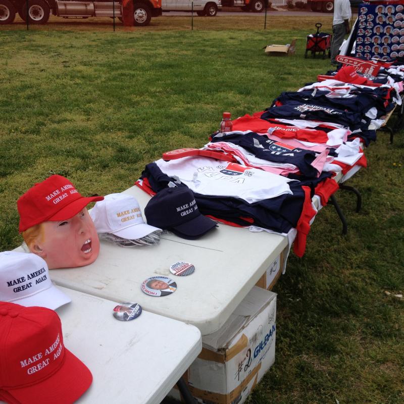 Not everyone at the event was local. There were nearly 50 vendors hocking Trump-themed hats, shirts, foam fingers, masks and pins.