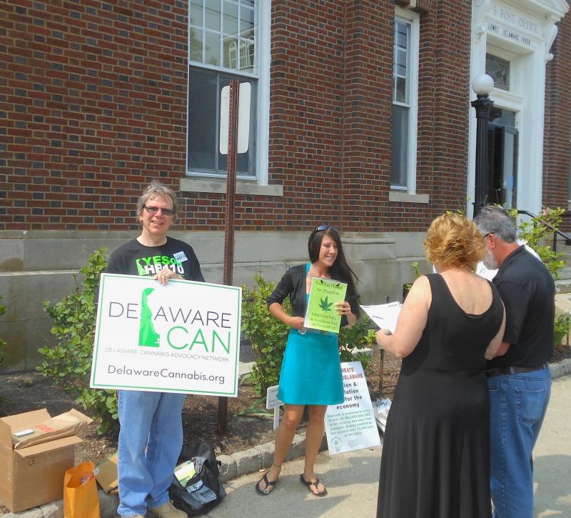 Delaware Cannabis Advocacy Network members stood in front of the Lewes Post Office April 29 trying to garner support from passersby for a bill legalizing marijuana in Delaware.