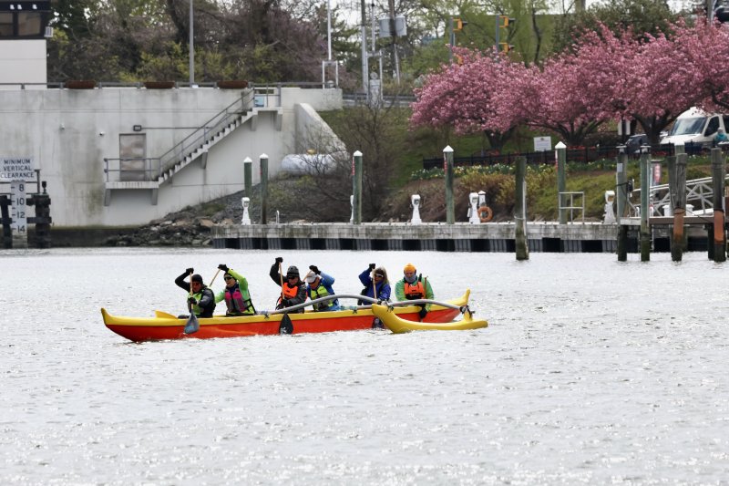Their Hawaiian outrigger canoe was recently repainted in brighter colors to stand out on the water.