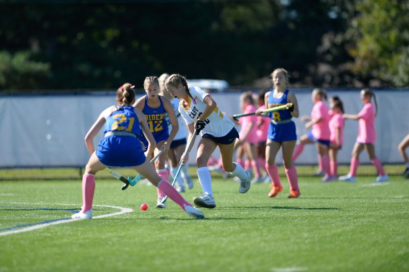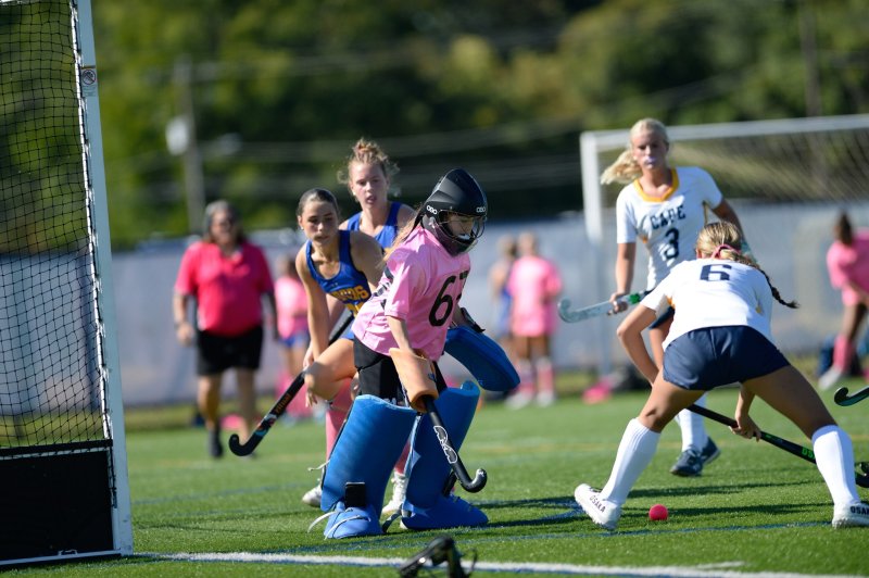 Cape and family - Susan, Davey and I left Lewes Saturday for a 10 a.m. JV field hockey game between Cape and unbeaten Caesar Rodney. It was a beautiful bluebird day. The skies were crowded with swarming clouds of grackles and migratory geese looking for a place to park without getting shot for their own good. It was Pink Out/Youth Day, a pretty-in-pink breast cancer awareness fundraiser at Caesar Rodney; the JV game was the undercard to the Mt. Pleasant at Caesar Rodney varsity game. Cape won the JV game 2-0, while the CR varsity team dominated Mt. Pleasant 8-0. Goal scorers for Cape were Hazel Mancari (Sara Caldwell) and Brielle Ramjattansingh. Alexis Puddicombe was credited with the shutout.