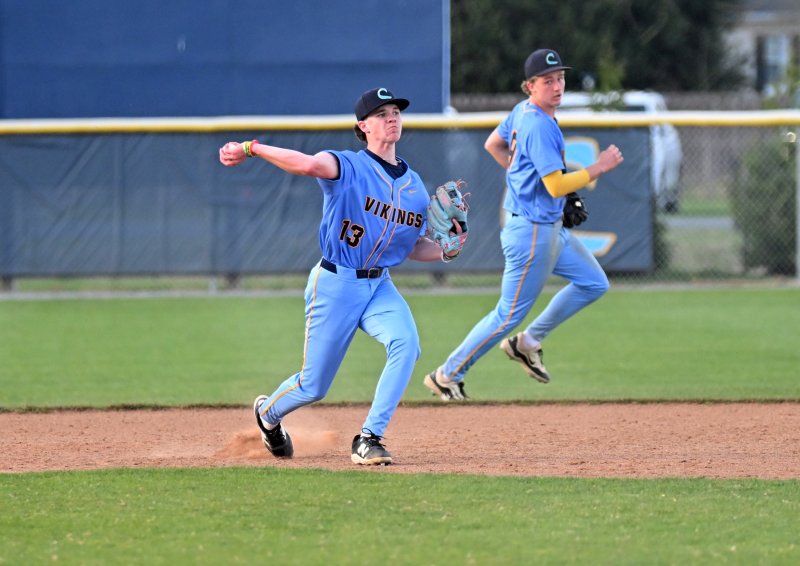Freshman Trey Dickinson went 3-for-4 with a double and three RBIs. Junior Jack Simeone and sophomores Joe Ruark and Triztan Willey each had multiple hits for the Vikings.