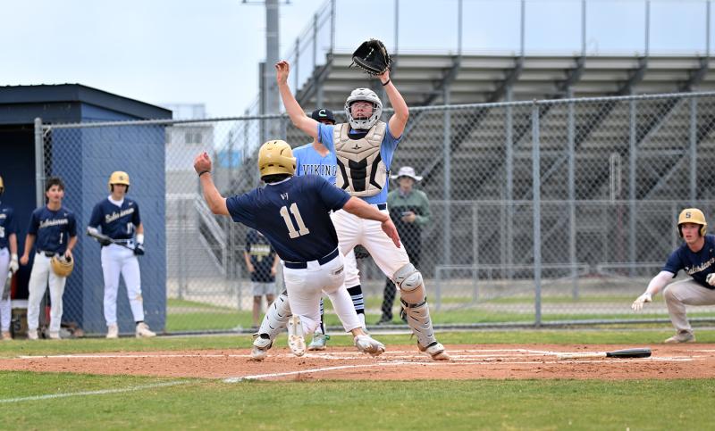 Marks toed the rubber for the Vikings, later relieved by Jacob Smith. Each struck out one batter. Jack Simeone came in from the bullpen and struck out seven.