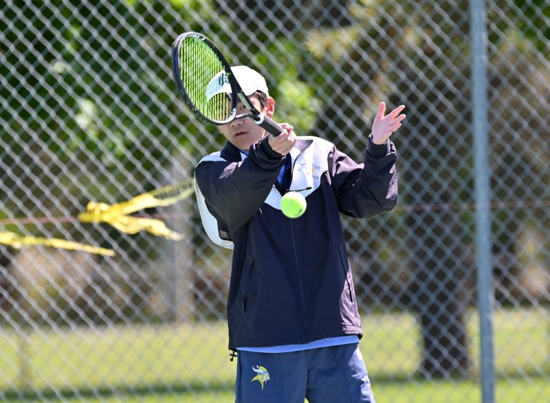 Vikings first-singles player Nate Hoang fell in a 10-3 tiebreaker in the third set. Second-singles player Sullivan Naden and third-singles player Caidan Juliano also fell to their Riders’ opponents.