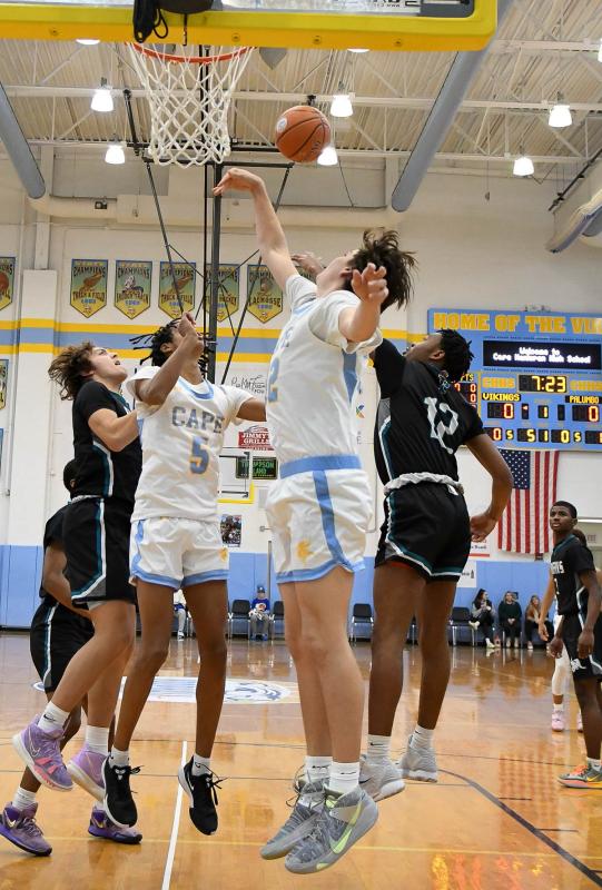 The Vikings endured a nightmare of a first half, falling behind the undersized but tough Griffins by as many as 13 points. Cape looked indecisive against Palumbo’s 1-3-1 zone, settled for ill-advised three-point heaves, and coughed up the ball again and again. Despite shooting 30% and committing 11 turnovers before intermission, the Vikings trailed just 31-23 at the break.