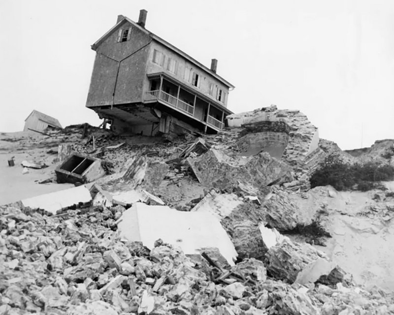 The Cape Henlopen Lighthouse fell into the Atlantic Ocean a century ago on April 13, 1926. Built in 1765, it was the second oldest lighthouse in the country at the time of its collapse. When constructed, the tower stood on a shallow foundation atop a sand dune at a considerable distance from the sea. Over time, the ocean encroached on the shoreline, threatening the stability of the lighthouse. In 1914, protective works were built by the Lighthouse Service, but because of the general erosion of the coastline, they could not be done effectively except at a great cost. Pieces of the lighthouse have been incorporated into many Cape Region homes, and several replicas have been built over the years, including the lighthouse inside the Rehoboth traffic circle.