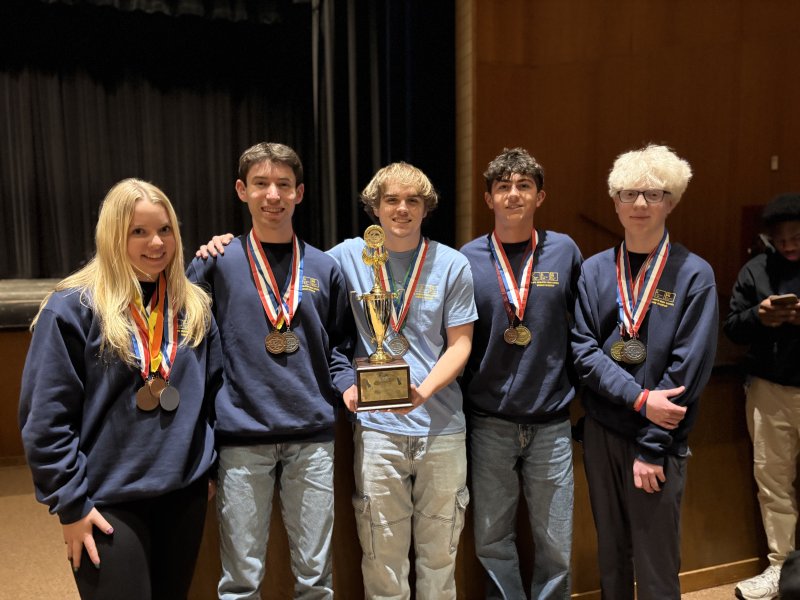 Third-place finishes included Circuit Lab (William Dorsch and Charles Umanzor), Helicopter (Nathaniel Hoang and Ellie Sprague), and Experimental Design (Joshua Cohen, Grace Eanes and Emily Flores-Rivas). Additional top placements included fourth place in Electric Vehicle (Joshua Cohen and Ellie Sprague) and Ping Pong Parachute (Charles Umanzor and Grace Eanes); fifth place in Forensics (Benjamin Carter and Gavin Carlisle) and Hovercraft (Ava Lewis and Quinton Eisenmann); and sixth place in Materials Science (Grace Eanes and Ava Lewis).