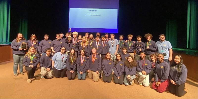 Cape students earned seventh place in Bungee Drop (Gavin Carlisle and Haldon Spriggs), Astronomy (Nathaniel Hoang and Ellie Sprague), and Entomology (Benjamin Carter and Haldon Spriggs); eighth place in Anatomy and Physiology (Nathaniel Hoang and Samantha Mayer); ninth place in Water Quality (Emily Flores-Rivas and Haldon Spriggs); and 10th place in Chemistry Lab (Joshua Cohen and Samantha Mayer) and Boomilever (Riley Stazzone and Aalyna Johnson).