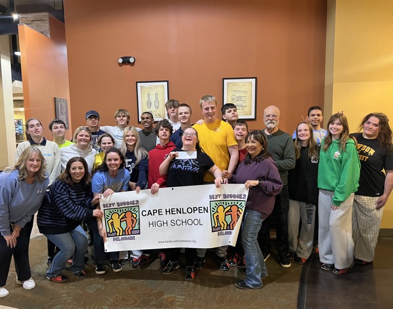 Several local businesses and organizations helped make the Bowlathon possible by sponsoring lanes for students, including Dairy Queen, the Lewes Presbyterian Church youth group, Rusty Rudder, Dirt Works, Alltemp Air and JD Shuckers. The club also received a generous donation from an anonymous community member, further demonstrating the strong support for inclusive programming in the Cape community. In an additional show of generosity, the Boardwalk Buddy Walk organization presented the Best Buddies Club with a donation during the event, helping further the club’s efforts to create meaningful opportunities for students.