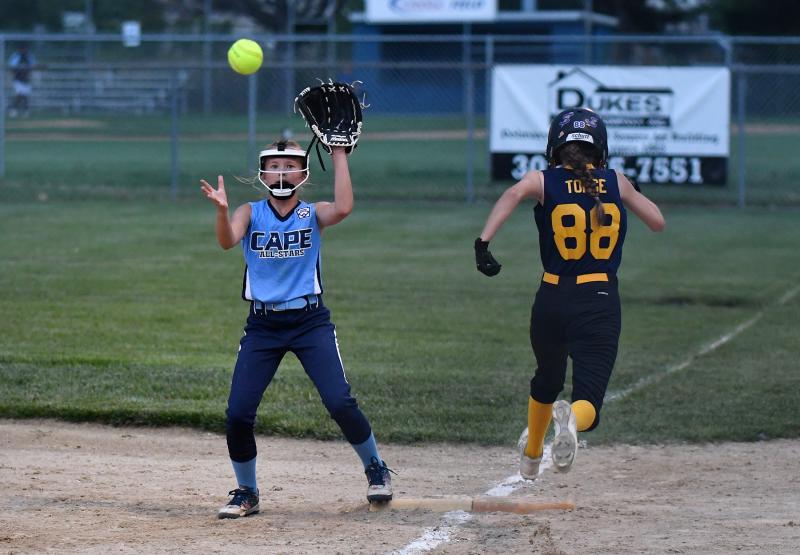 Lyla Hunsberger led the Cape team with four RBIs on two singles. Mia Scott, Addison Zimmerman and Savannah Books each drove in two RBIs, while Makaila Sellers and MaryKate Dougherty each added an RBI. Dougherty went 3-for-3 in the game.