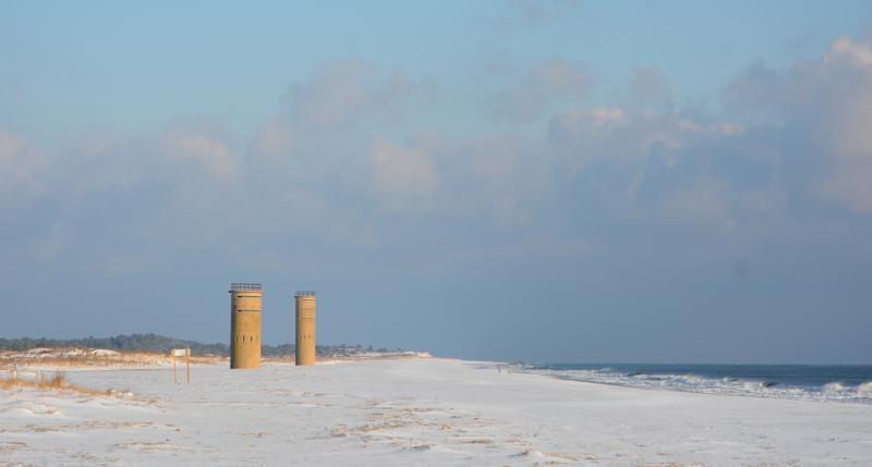 The Fort Miles barracks in Cape Henlopen State Park are covered with a fresh coat of snow from a brief Jan. 7 storm. RON MACARTHUR PHOTO
