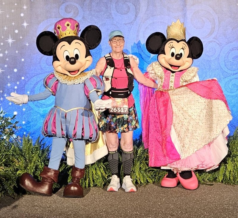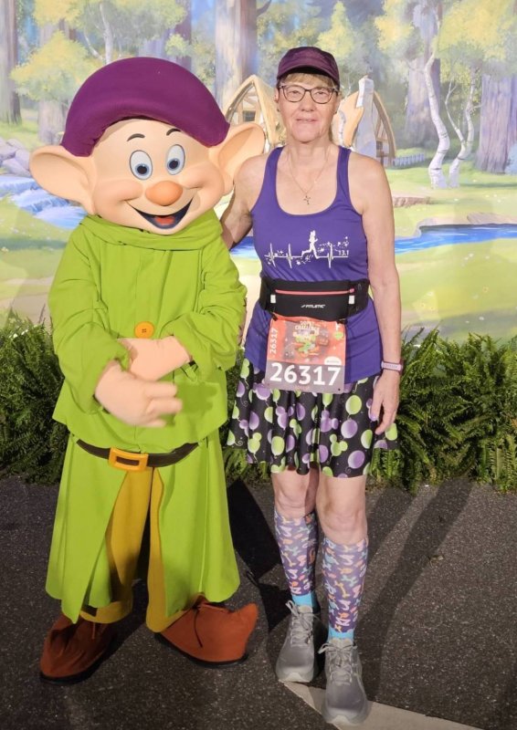 A Disney flashback saw Striders runner Sharyn Slick as the perfect Dopey until COVID, meaning she didn’t miss a Dopey Challenge until then. Slick completed her last Dopey in 2020 at age 73.