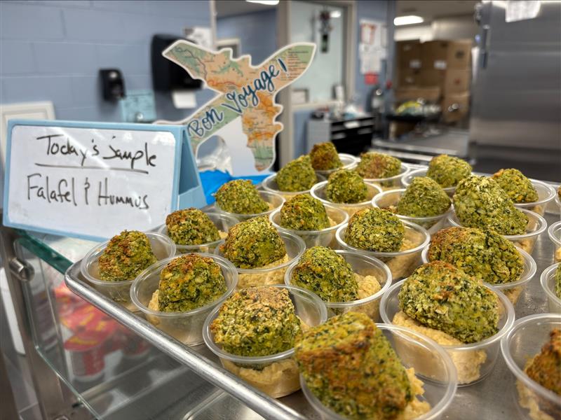 Throughout the week, Cape’s Child Nutrition Services team hosted super sampler events at schools across the district. Fun, interactive tastings featured small portions of internationally inspired menu items, offering students a chance to sample dishes such as roasted chickpeas, chicken empanadas, Brazilian cheese bites, hush puppies and more. Each cafeteria was transformed into a mini “food passport experience,” complete with maps, themed decorations and opportunities for students to stamp their passports each time they tried a new dish.