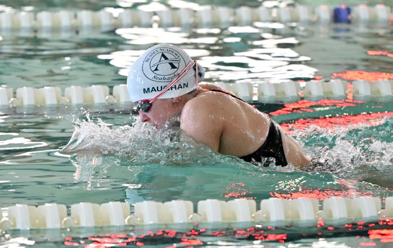 The Cape boys’ swim team overpowered Sussex Academy 118-52, but the Seahawks’ girls’ squad squeaked out an 87-83 win over the Vikings Jan. 30 at the Sussex Academy Aquatic Center.