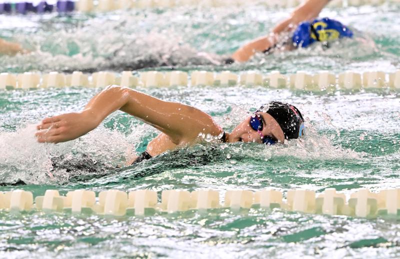 Cape sophomore Mia Jaoude broke the 50 free conference record with a time of 24.33 and dropped the 100 butterfly conference record with a time of 57.02. Jenna Reinhold, Zoey Neufeld, Isla Touw and Jaoude broke the 200 freestyle relay conference record with a time of 1:42.73.