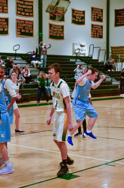 His classmate, Zack Valles, had a noteworthy game as well. Collick said the sophomore is usually timid in physical education classes, but really stepped into the moment in the season-opener. His celebration pumped up his teammates and the crowd after he made a shot.