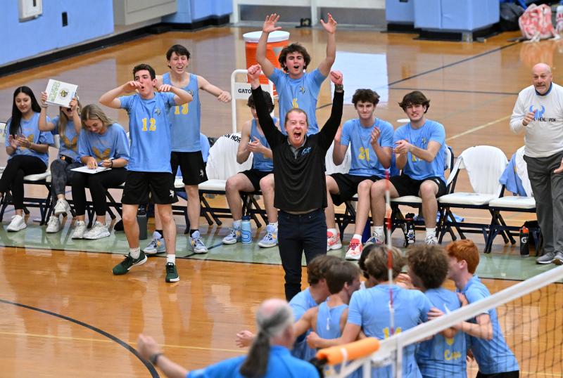 Cape’s front-line offense collected 39 kills in the match. Bryce Patterson led the way with 11 kills and five digs. The twin towers of Braxton Figgs and Lawson Whaley pounded eight and seven kills, respectively. Tias Small registered six kills and two aces.