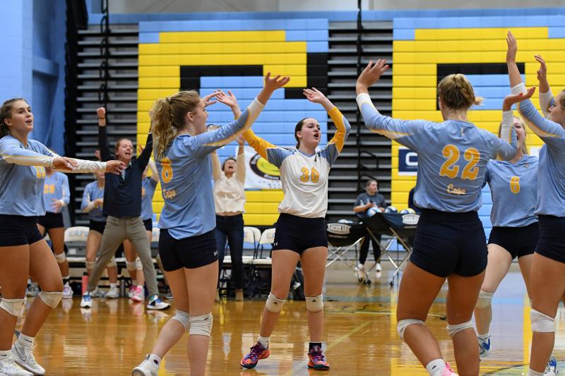 “Tonight stings,” said Cape head coach Tyler Coupe. “We came into the match with a week’s worth of quality practices, and I don’t think we were able to put that on full display. A credit of that goes to Dover. Their defense played a fantastic match and kept countless balls in play that have typically scored us points during the season. Set four was something that was within our grasp, and we needed to hang on to it. Unfortunately it’s been our MO most of the season; build a lead of 6-8 points and then make a run of unforced errors. Our girls never quit, though. They did their best to fight through, and I’m comfortable with that. We threw freshman Amalia Fruchtman in after set one to get a different look vs. their outsides, and I think it proved beneficial. She did a great job applying offensive pressure for her first true playing time of the year.