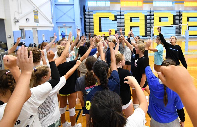 “We had a great three days of tryouts,” said Cape head coach Tyler Coupe. “We had 45 athletes competing for their spots. We ended up taking 15 on JV and 14 on varsity. A great sign of the continued interest and growth of our sport. Twenty who tried out were freshmen. Such a testament to our two middle school programs, and the work Dion Lamb and CVC does to promote and grow the game in the winter months. Of the 15 JV players, 12 are freshmen, with such a strong returning trio of sophomores in Emme Smith, Brielle Ross, and Alivia Heers. We have a few brand-new volleyball players on JV, but showed such a strong ability to listen and put into motion what we coaches asked each session. I’m really excited to see how coaches Logan [Shuttleworth] and Pam [Coupe] grow these athletes into the future of our program.”