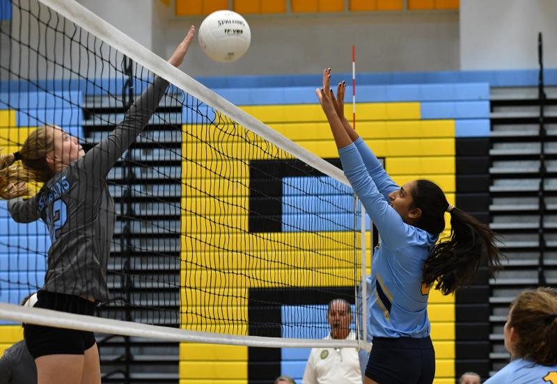 Vikings senior Simran Patel, in her first game back from an injury, picked up two kills and a block in the match.