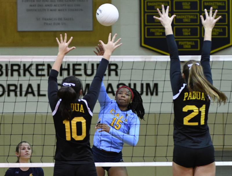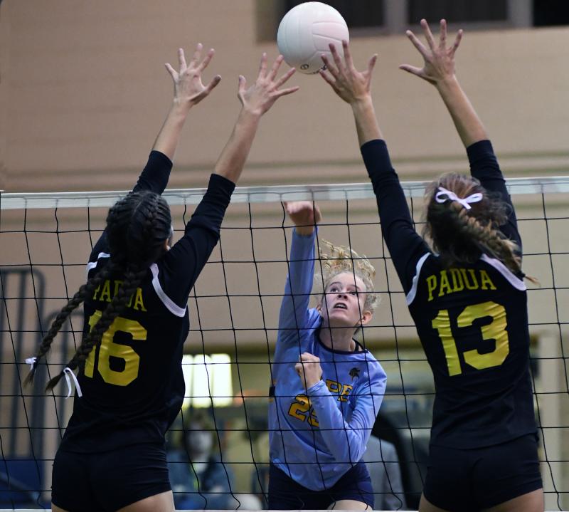 It was like a homecoming of sorts as Cape volleyball head coach Tyler Coupe took his team to the Sallies gymnasium where he played his high school career, but it was to meet the DIAA No. 1-seeded Padua in the second round of the DIAA State Tournament. The Pandas are coached by Coupe’s former club coach Lauren DiSabatino. DiSabatino and the Pandas eliminated the Vikings from the tournament with a 14-25, 7-25 and 13-25 victory.