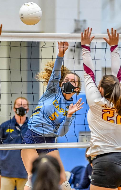 “This was a really fun Senior Night for us,” said Cape head coach Tyler Coupe. “Our seven seniors – even an injured Madison Mahoney – were able to have an impact on the match. They proved what we’ve been preaching all year, that it’s not a group of starters and non-starters, it’s whatever combination makes the most successful platoon in that moment. Natalie Derrickson did a great job distributing the ball in her debut as setter. She was balanced and poised, and shared the ball across the net extremely evenly. Angelica and Erin had a very efficient offensive effort. Looking forward to seeing how we close out these last two matches of the regular season.”