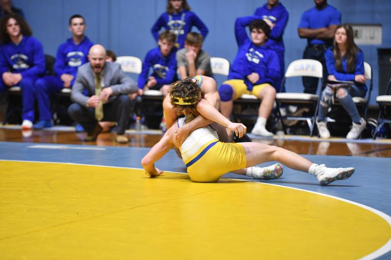 “I figured each team at 31 points before the match, but beyond that, I knew we had to stay close to being on schedule to have a chance,” said Cape coach Chris Mattioni. “Pins are calculated as bonus points, but tonight not getting pinned in lighter weights helped us win this match. I figured we may give up 18 points at 106, 120 and 126 where CR is extremely tough, but we only gave up 12.”