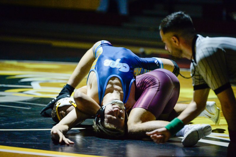 Wins by pin for Cape were Jack Hudson (113) over Randy Hudgins Perez in 3:35, Cale Baker (120) over Herman Littleton in 0:34, Austin Guerrieri (126) over Charlie Truesdale in 1:40, Grayson Davis (150) over Kaiden Swain in 1:39 and Nick Walker (157) over Wyatt Herring in 1:42.