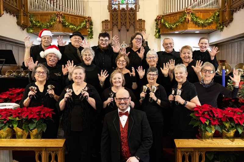 Capital Ringers handbell ensemble members shown are in back (l-r) Earl Roberts, Ken Schleifer, Jonathan Ray, Heather Beauchamp, David Mangler and Tricia Delnay. In the third row are Bing Crosby, Judy Moore, Harriet Marisa, Laura Crosby and Nancy Yost. In the second row are Christine Fox-Roberts, Niki Runge, Leigh Anne Fake, Debbie Myers, Judy Peterson and Lee Ann Walling. In front is Kevin Chamberlain, artistic director. SUBMITTED PHOTO