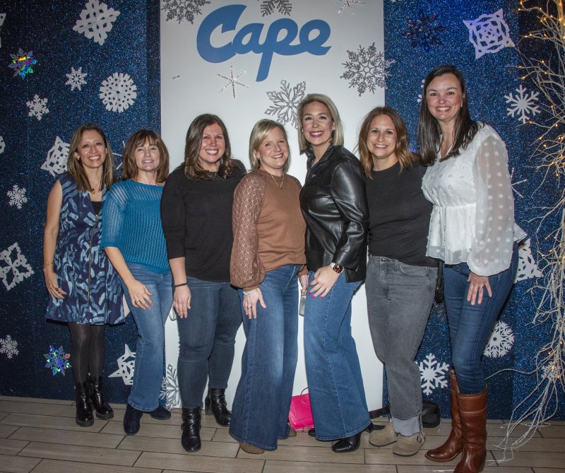 Sponsors and friends get together at the photo wall. Shown are (l-r) Molly Lingo, Julie Boyd, Lexi Gooch, Michele and Ross Karsnitz, Kristen Loffreda-Mancinelli, Bridget Marshall and Janeen McGinley.