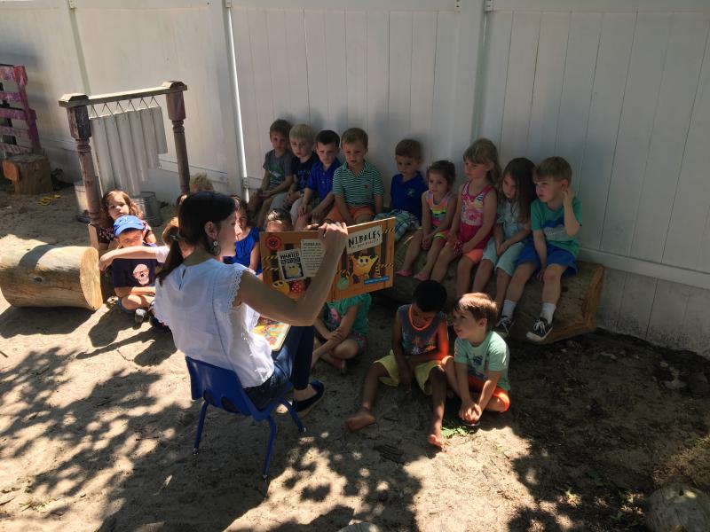 "Being in the outdoor classroom increases children's attention spans, and expands their creativity and imagination. Not to mention the daily real-life connections that are made. They are learning the names of the birds while watching them build their nests and feed their babies. Kids count how many tomatoes are growing on each vine and watch flowers to see which one will bloom first. The conversations and learning opportunities are different every day," said preschool teacher Leslie Caruso.
